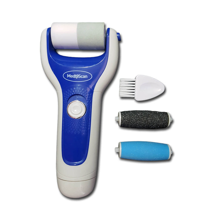 - Smooths rough skin with a dry-skin roller and buffing roller