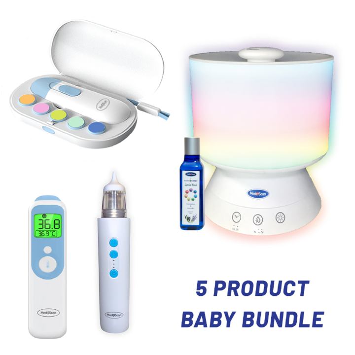 The MedeScan Baby Care Starter Pack is the ultimate solution to support new parents in nurturing and keeping their little ones healthy. This thoughtfully curated bundle brings together essential tools designed to simplify baby care and enhance comfort while ensuring peace of mind. Whether you need to maintain a perfectly humidified nursery, monitor your baby's temperature effortlessly, or ensure clean and easy nail trimming, this pack offers superior care solutions.