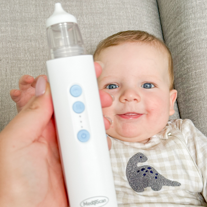 Now with 3 suction levels and a Removable Booger Tank waterproof motor, the new MedeScan L’il Booger Buster makes clearing your baby’s nose easier and more hygienic than ever.