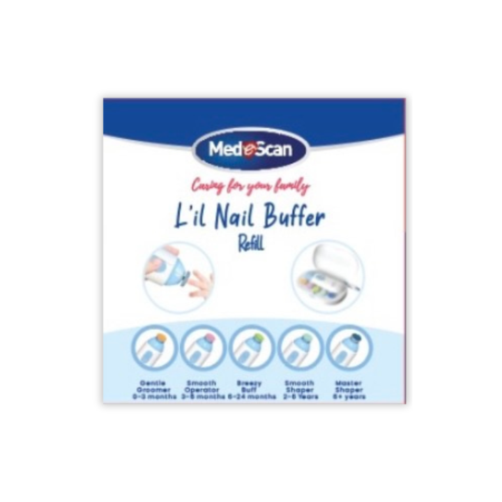 Keep those tiny nails tidy from day one through to big kid years with the L’il Nail Buffer Heads refill pack - made exclusively for use with the Medescan L’il Nail Buffer.